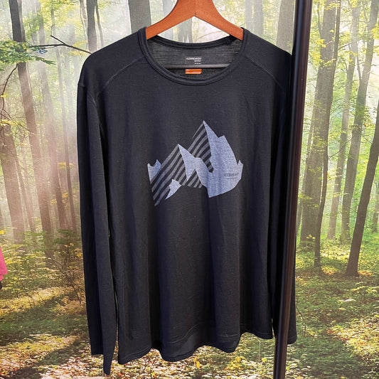 Longsleeve von Icebreaker Merino (XL Herren) schwarz mit Print Berge