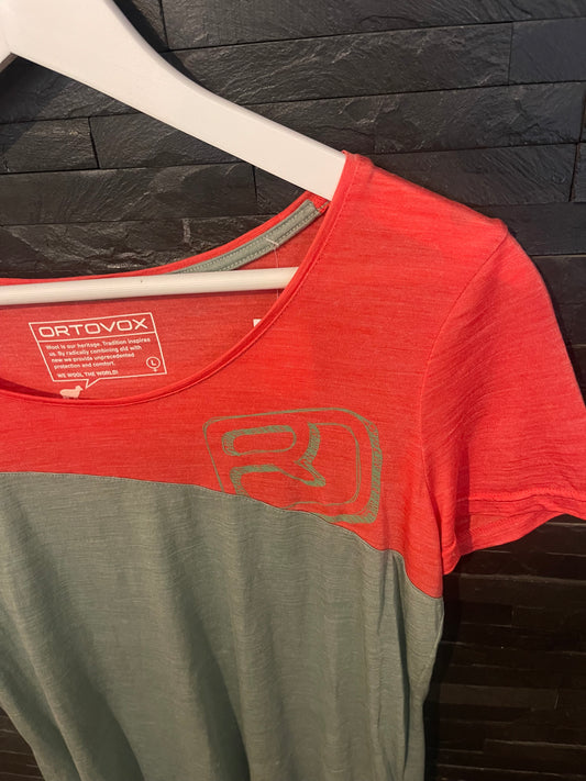 T-Shirt von Ortovox Merinowolle (L Damen) grün rot