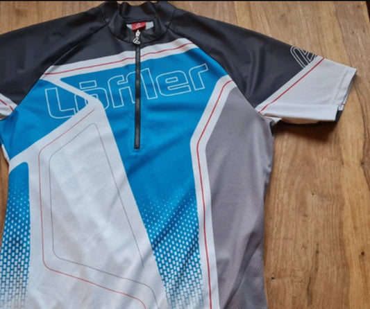 1/3 Zipper Radtrikot (M Herren) von Löffler weiß grau blau mit Print
