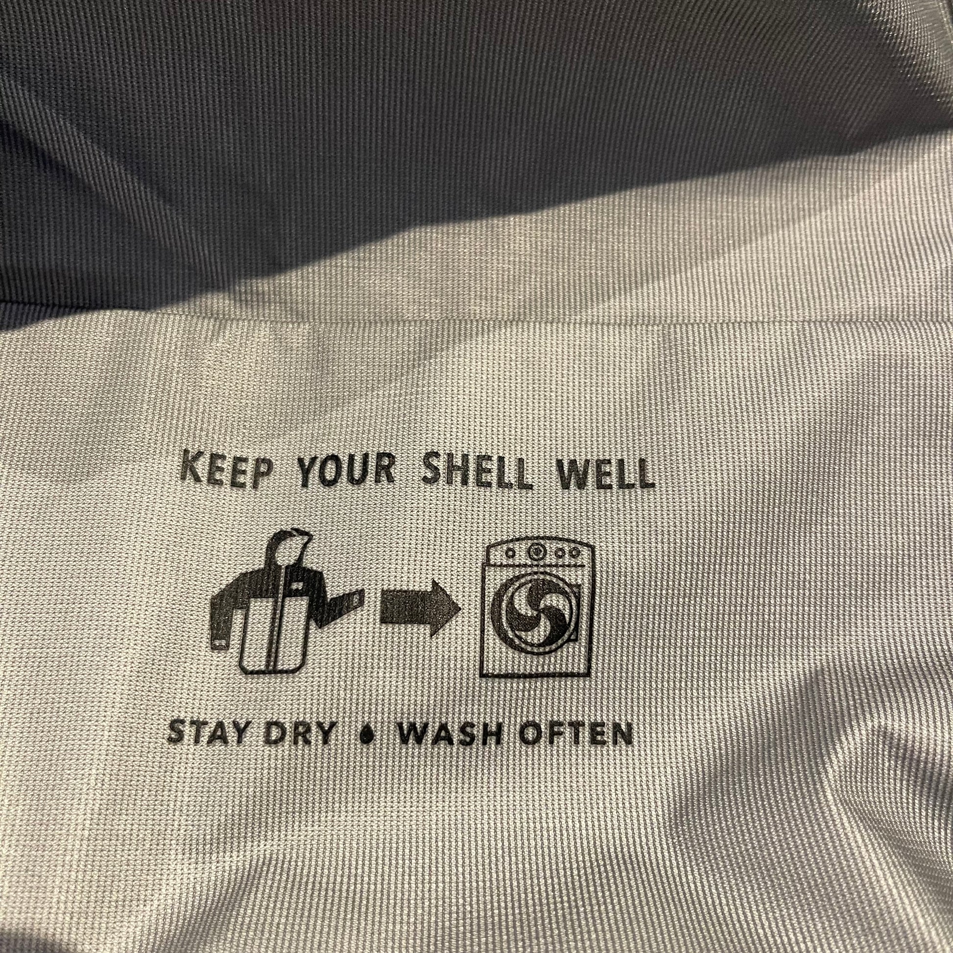 Das Gewebe ist mit einer DWR (durable water repellent) Imprägnierung ausgerüstet.