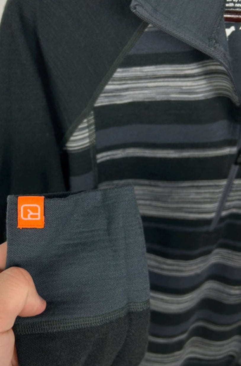 Longsleeve Ortovox Merino (M Herren) 1/3 Zipper Shirt dunkelgrau gestreift