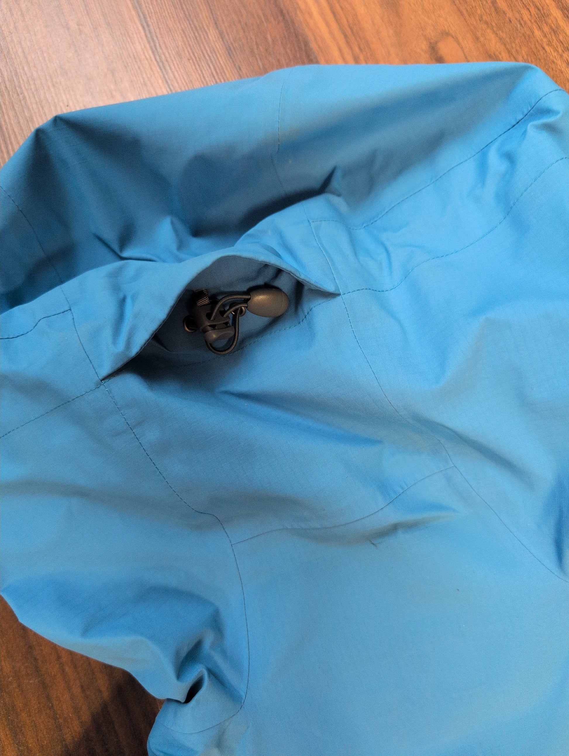 Hoher Kragen, um den Hals gut warm zu halten. Weitenregulierbarer Bund und Kapuze.